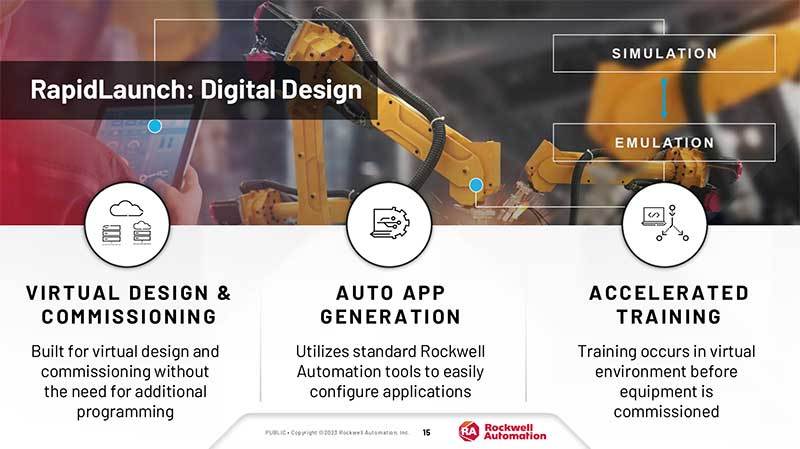RapidLaunch is built using world class digital design tools allowing users to quickly configure machines based on their physical layouts. Simply add the value-added sequence logic and the machine can be virtually commissioned without the need for additional control code.